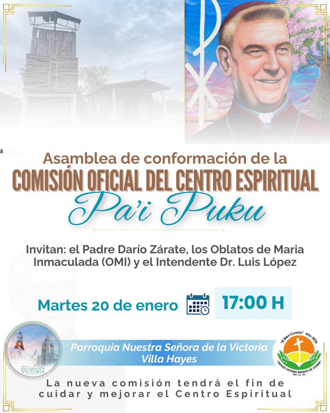 Así es muy loable la iniciativa del P. Darío Zárate de la parroquia Virgen de la Victoria de Villa Hayes y del Intendente Dr. Luis López de invitar juntos con los Oblatos a una gran asamblea para conformar allí una nueva Comisión oficial con el fin de llegar al mejoramiento del sitio! De parte de los Oblatos van a venir Mons. Guillermo Steckling OMI y P. Zenón Berikani OMI!