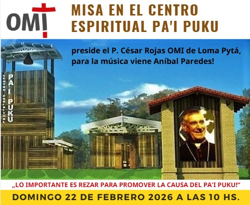 La próxima Misa OMI en la Capilla del Centro espiritual Pai Puku es el domingo 22 de febrero 2026 y va a celebrar ahora el P. César Rojas OMI de Loma Pytá como reemplazante del P. Oscar Vera OMI, quien está trabajando nuevamente en Mariscal Estigarribia en el Chaco.