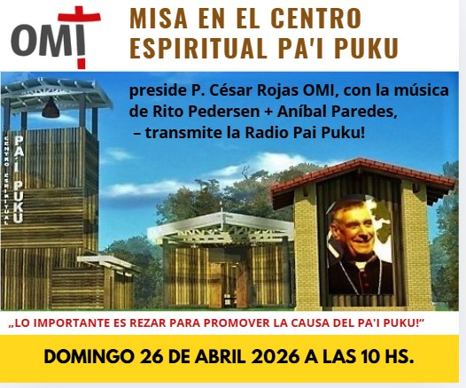 La próxima Misa OMI en la Capilla del Centro Espiritual Pai Puku es el domingo 26.4.2026. Otra vez va a celebrar como reemplazante del P. Oscar Vera OMI el P. César Rojas OMI de Loma Pyta. Para la música vienen de nuevo el arpista Rito Pedersen y el guitarrista Aníbal Paredes! También es previsto la transmisión de la Misa OMI por la Radio Pai Puku!